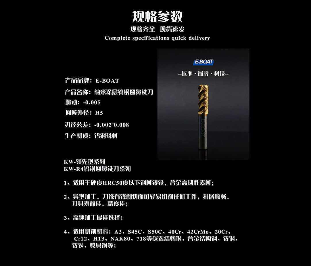 產(chǎn)品名稱:納米涂層鎢鋼圓鼻銑刀
